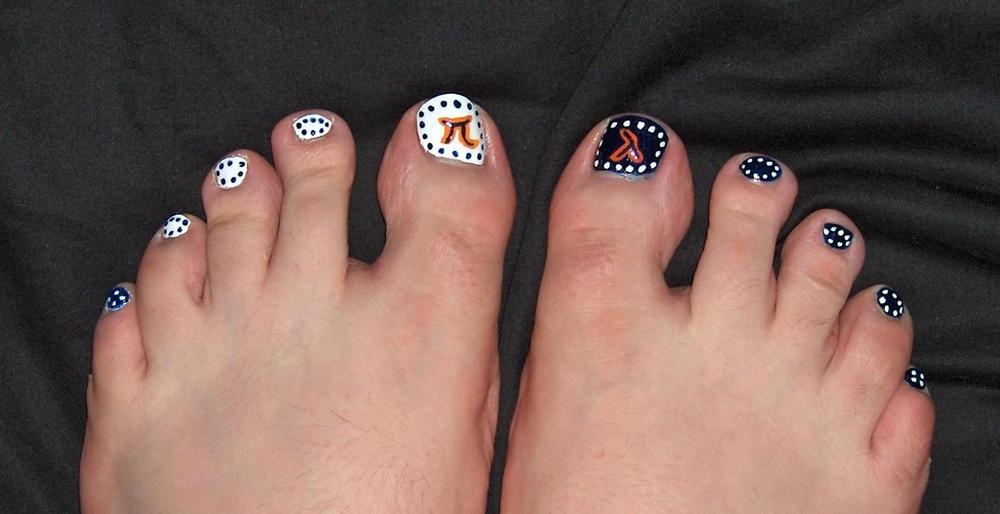 Jul. 7th, 2006 01:44 amI had another long session with acrylics and the toe nails of my husband, and this is the result. As you can see, pi and lambda work very well as miniatures :)))))))))